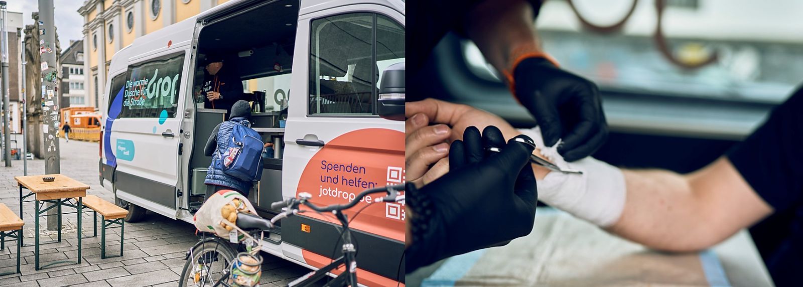 Bei jotdrop ist jede und jeder willkommen – egal, in welcher Lebenssituation sie oder er sich befindet. Und da wir wissen, dass die Klientel nur sehr eingeschränkt mobil ist, kommen wir dahin, wo sich die Menschen aufhalten.