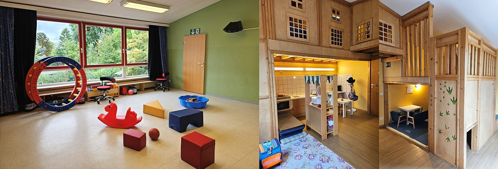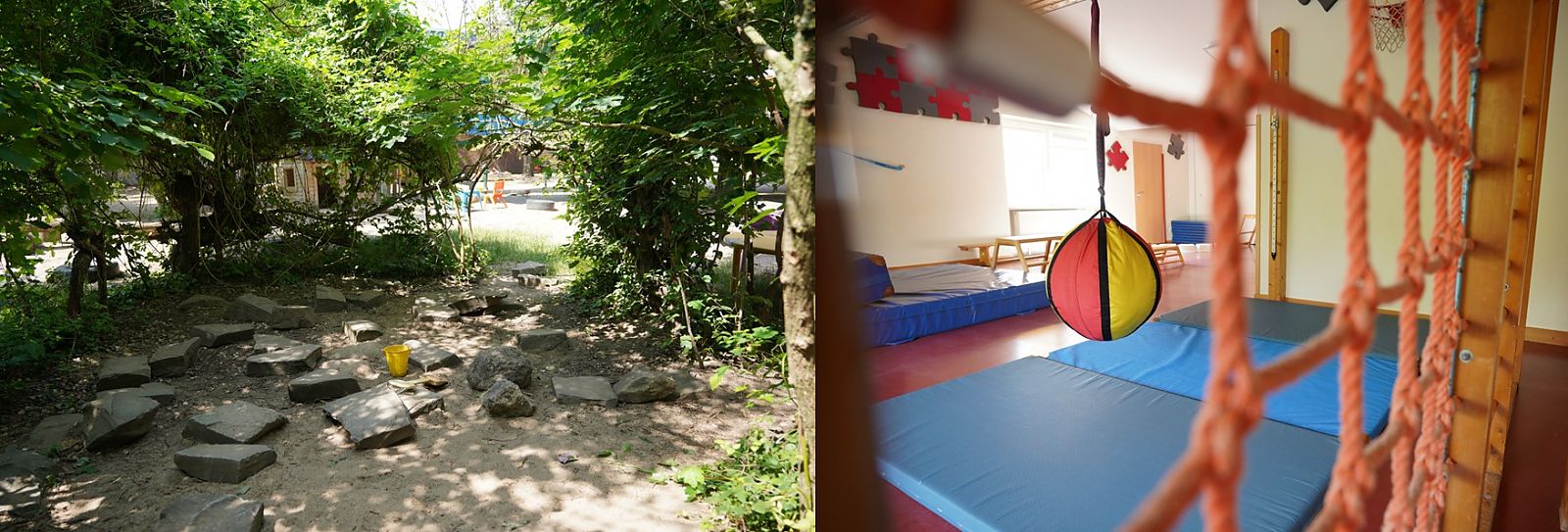 Für die Kinder das größte Highlight ist wahrscheinlich das großzügige, naturbelassene Außengelände, das zum Entdecken, Spielen und Forschen einlädt. Zum Austoben steht ein großer Bewegungsraum zur Verfügung.