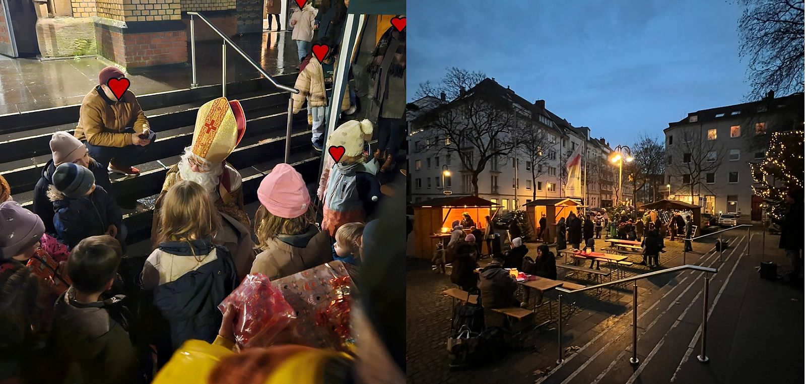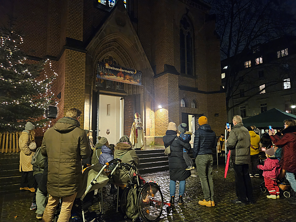 Der Markt bot herzhafte und süße Leckereien, ein Bastelangebot für Kinder sowie musikalische Auftritte von Kita-Chor bis Turmblasen. Sogar der Nikolaus gab sich die Ehre und verteilte Geschenke an Kinder – das alles kostenfrei, um nicht nur niemanden auszuschließen, sondern auch niemanden als bedürftig erscheinen zu lassen.