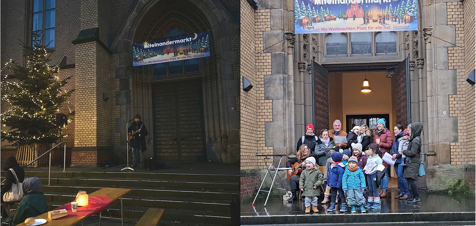 Eingeladen waren gezielt vor allem Menschen mit wenig Geld. Deshalb wurde der Miteinandermarkt bewusst im Vorfeld nicht in der breiten Öffentlichkeit beworben. Stattdessen entstand mitten in Flingern ein Ort voller Wärme, an dem sich alle Besucherinnen und Besucher sichtlich wohl fühlten und bei Getränk und Imbiss am wärmenden Feuer ins Gespräch kamen und an den vielen musikalischen Darbietungen erfreuten.